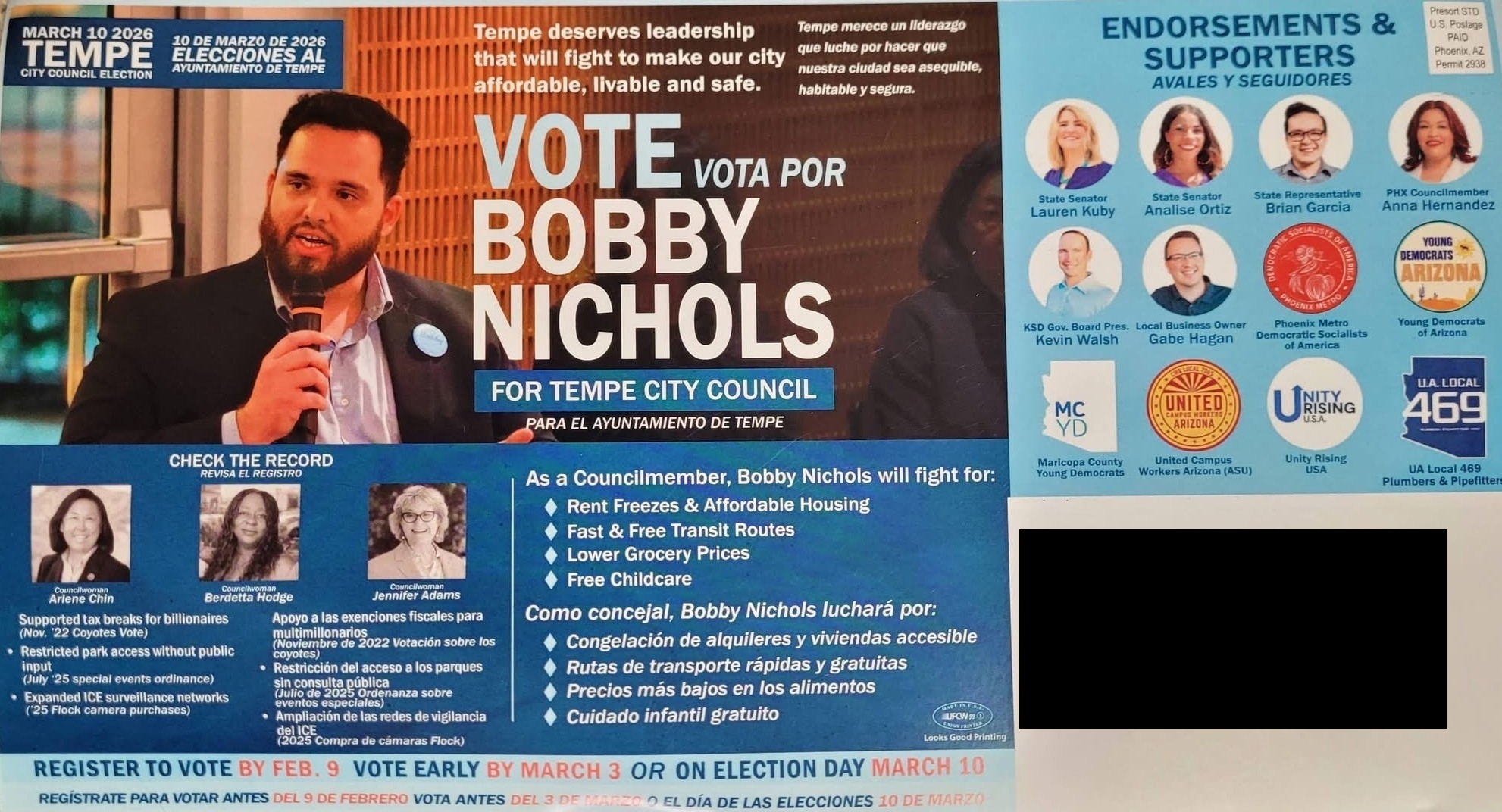 Pro-Bobby Nichols Bilingual Mailer (Tempe City Council) | AZ
