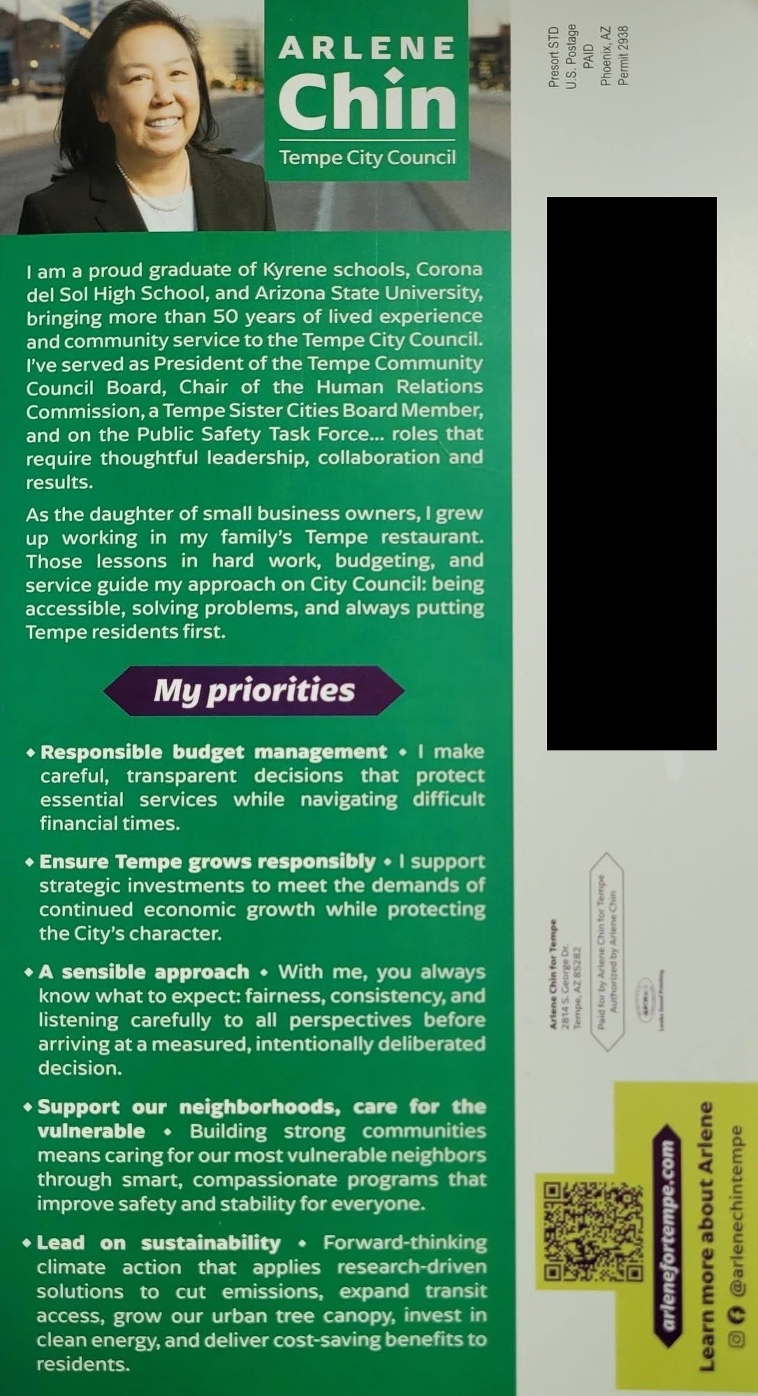 Pro-Arlene Chin Mailer (Tempe City Council).