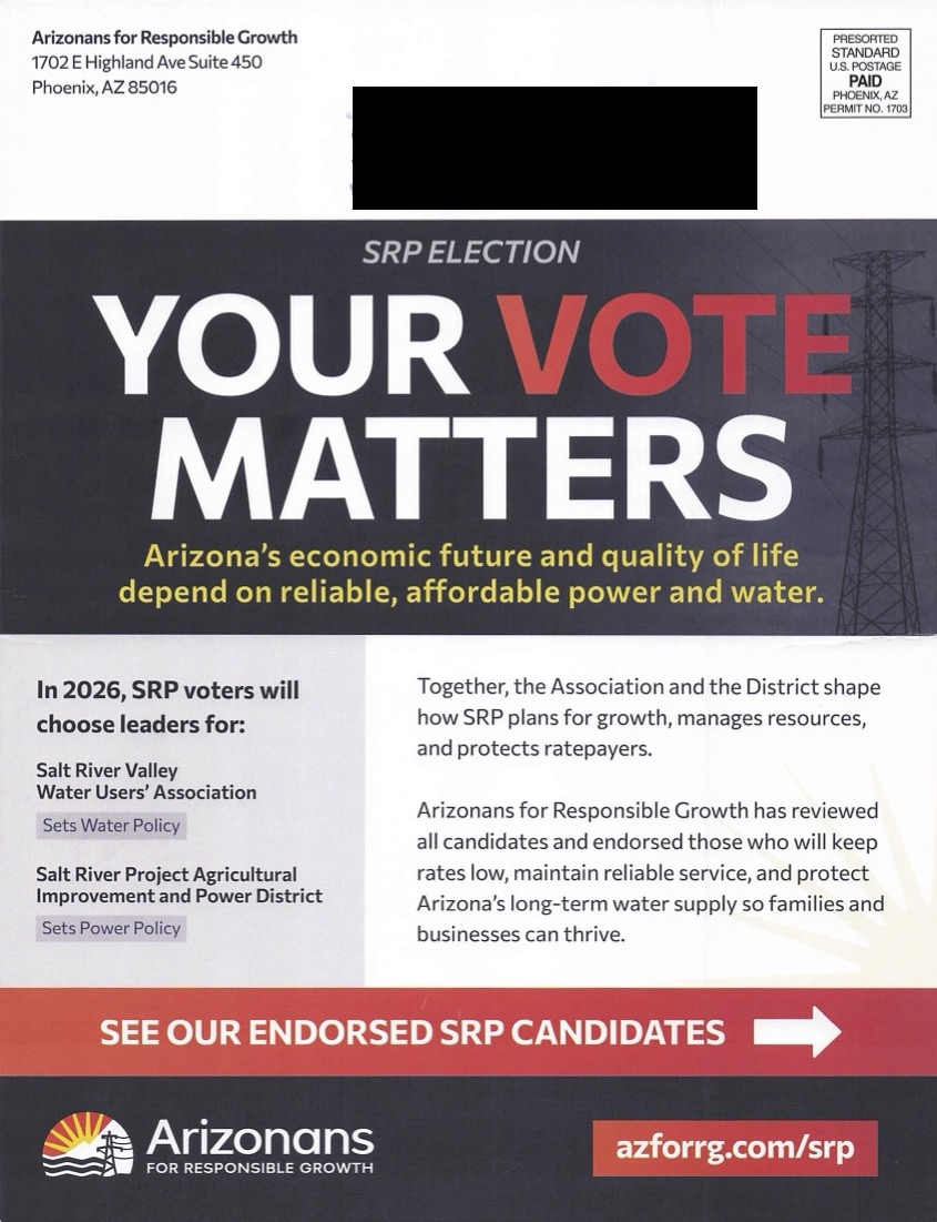 SRP Election Mailer by Arizonans for Responsible Growth | AZ