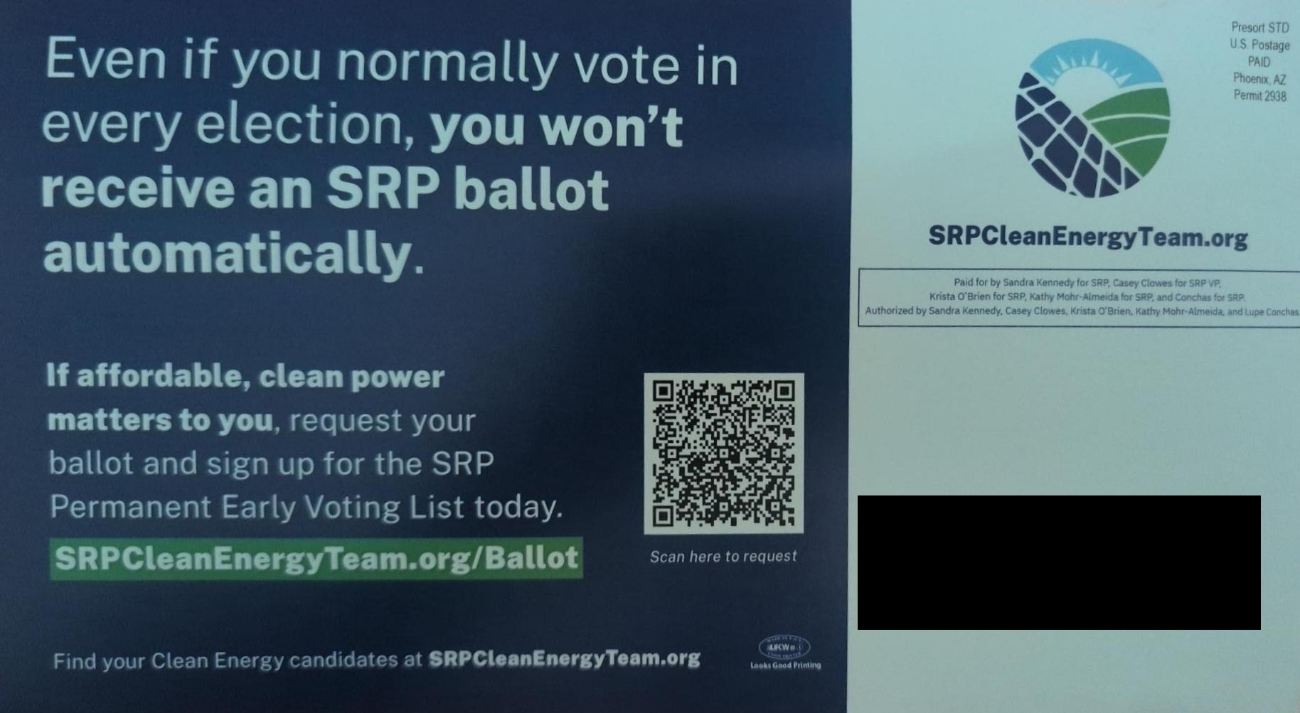 SRP GOTV Mailer by Clean Energy Team | AZ
